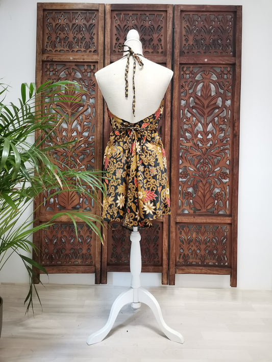 Korte zomerjurk/lange top, piramide vorm variant 2, zwart met goud