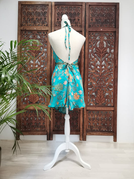 Korte zomerjurk/lange top, piramide vorm variant 8, turquoise