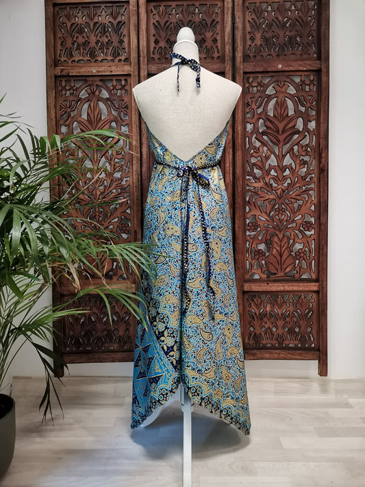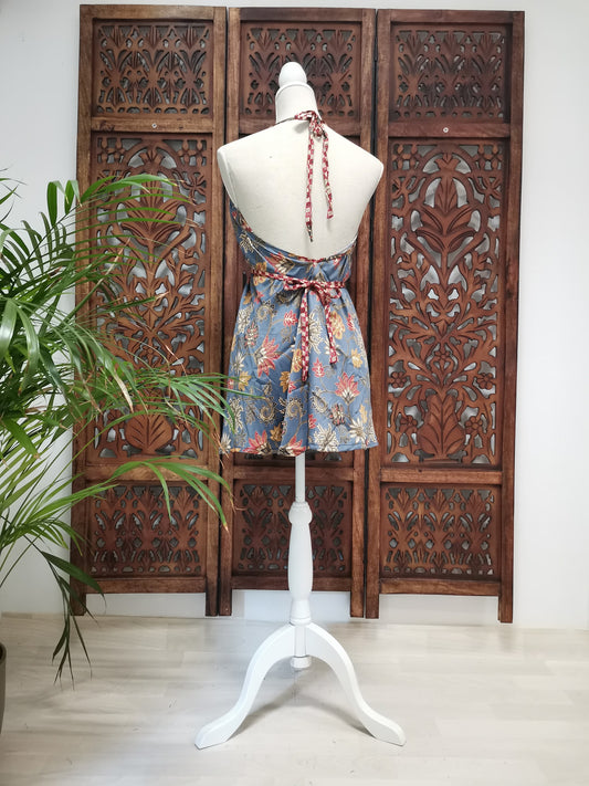 Zomerjurk, piramide vorm, lichtblauwmet bloemen