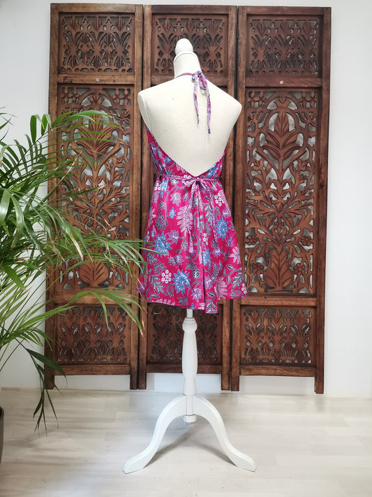 Jurk, zomerjurk, piramide vorm, roze, fuchsia