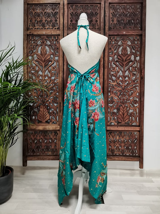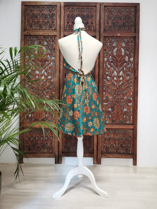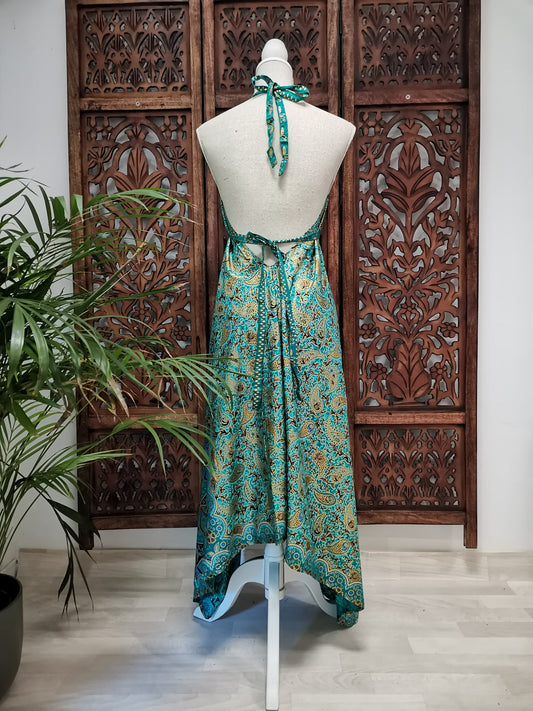 Jurk, zomerjurk, piramide vorm, turquoise, blauwgroen