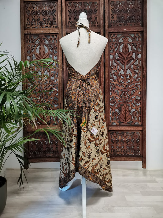 Jurk, zomerjurk, piramide vorm, bruin