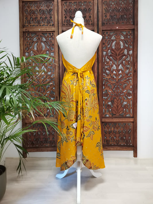 Jurk, zomerjurk, piramide vorm, geel, oker